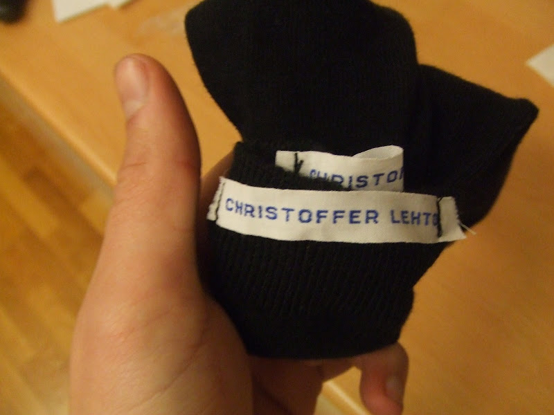 Hållen har märkt sina stumpor efter en despyt om vem som hade alla vita tubsockor (enligt Johannes Håll var alla hans).
